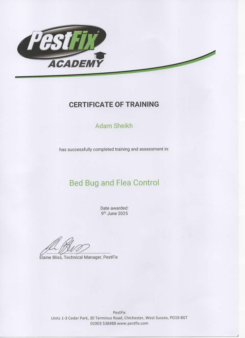 | Pestfix Academy – Bedbug and Flea Control Adam |